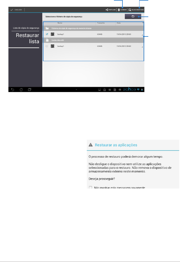 No ecrã principal do App Backup, toque em Restaurar lista no painel da