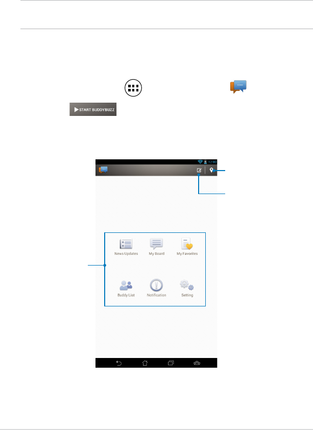 2. Pieskarieties , lai palaistu BuddyBuzz galveno ekrānu.